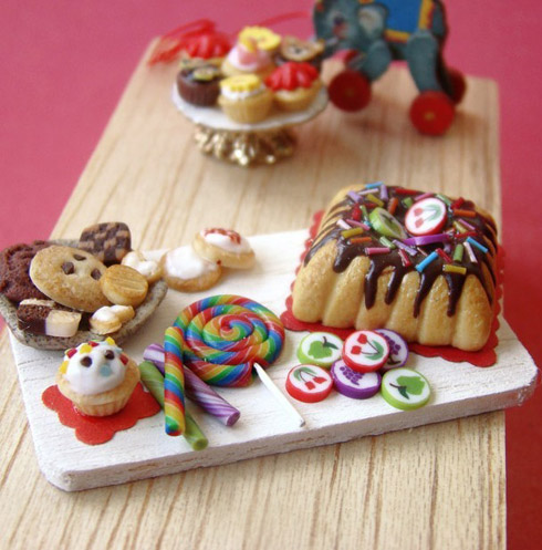 这是法国桑利斯的24岁艺术家Stephanie Kilgast带来的让人垂涎的袖珍蛋糕,每一件都是艺术家亲手用软陶制作,至少需要耗费3个小时的时间,仅有实物的1/12大!从2007年想出这个点子到现在,Stephanie已经完成了600多件软陶袖珍蛋糕,并把它们放在网络上销售。